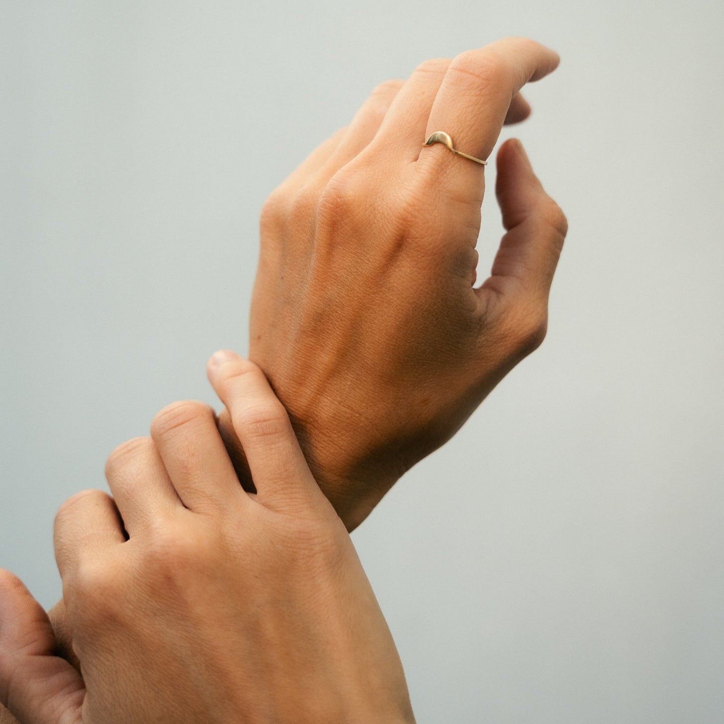 Discover our Half Moon Ring, crafted to order from 100% recycled 9k gold. A delicate gold band with our signature Half Moon shape. Each ring is meticulously shaped by hand, ensuring no two pieces are exactly alike.